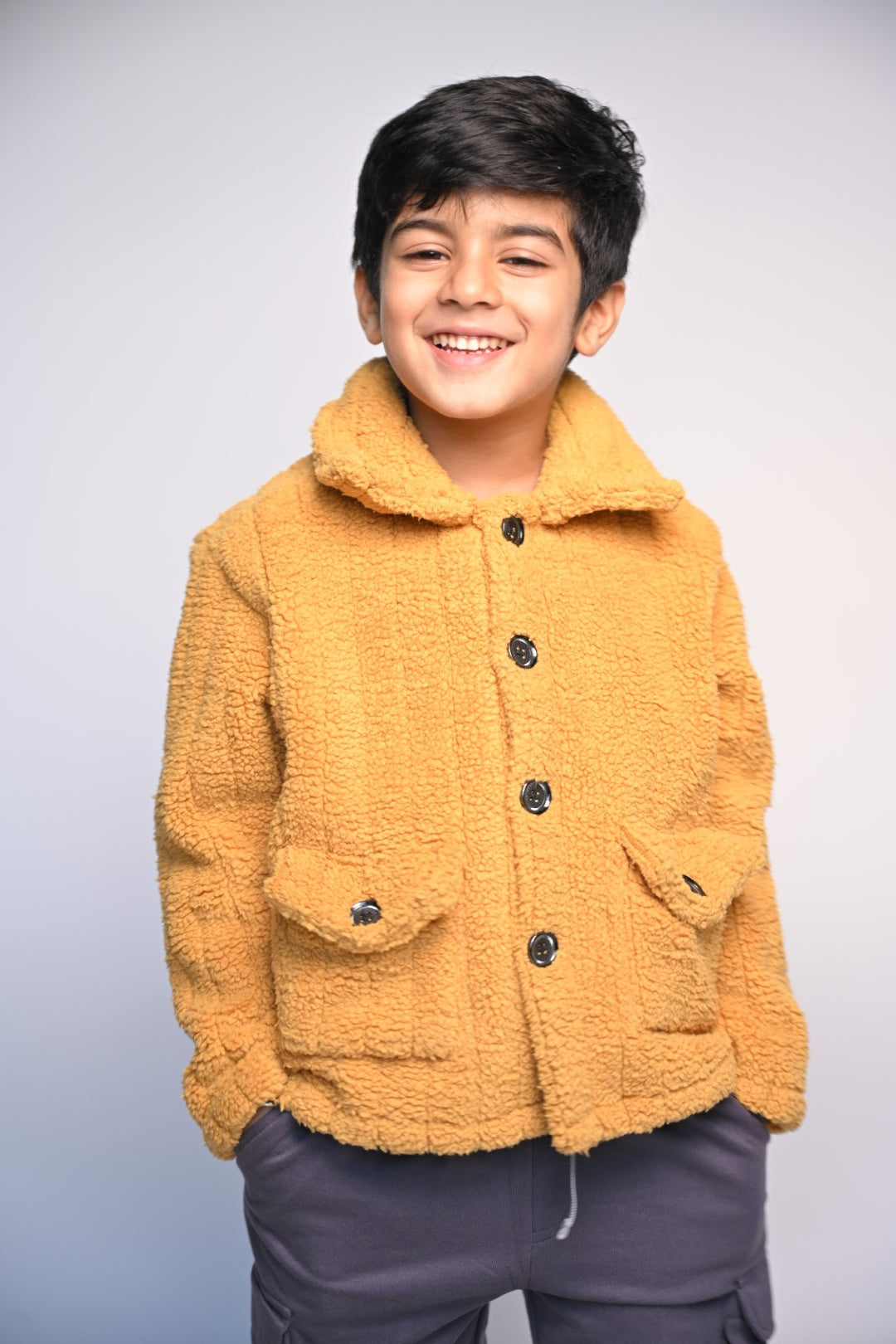 Stay warm and stylish this winter with this universally appealing Faux Shearling Jacket! This cozy piece features a classic collar neck, long sleeves, and buttoned front. Plus, it's sure to liven up any outfit with its vibrant color. Talk about a must-have!