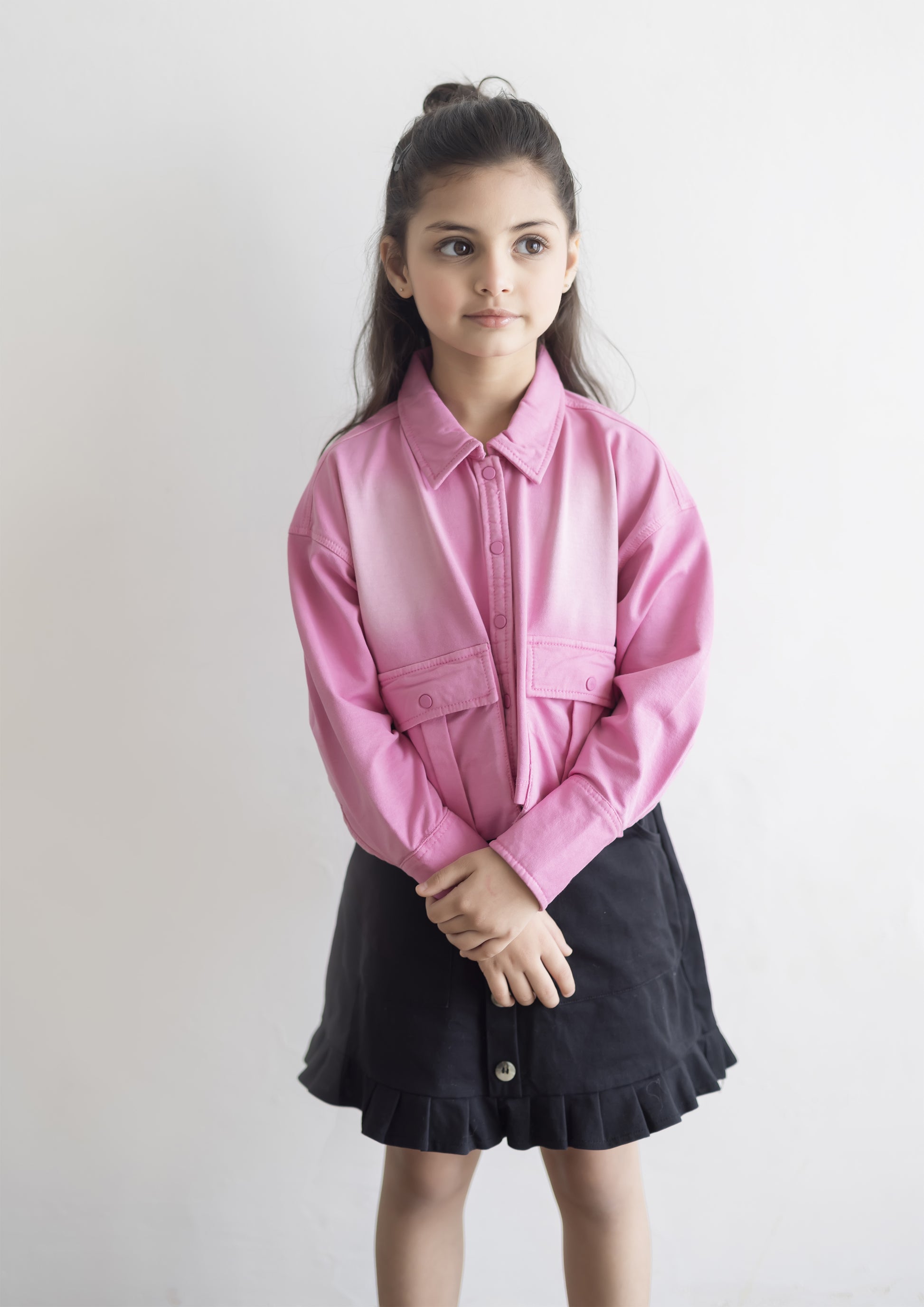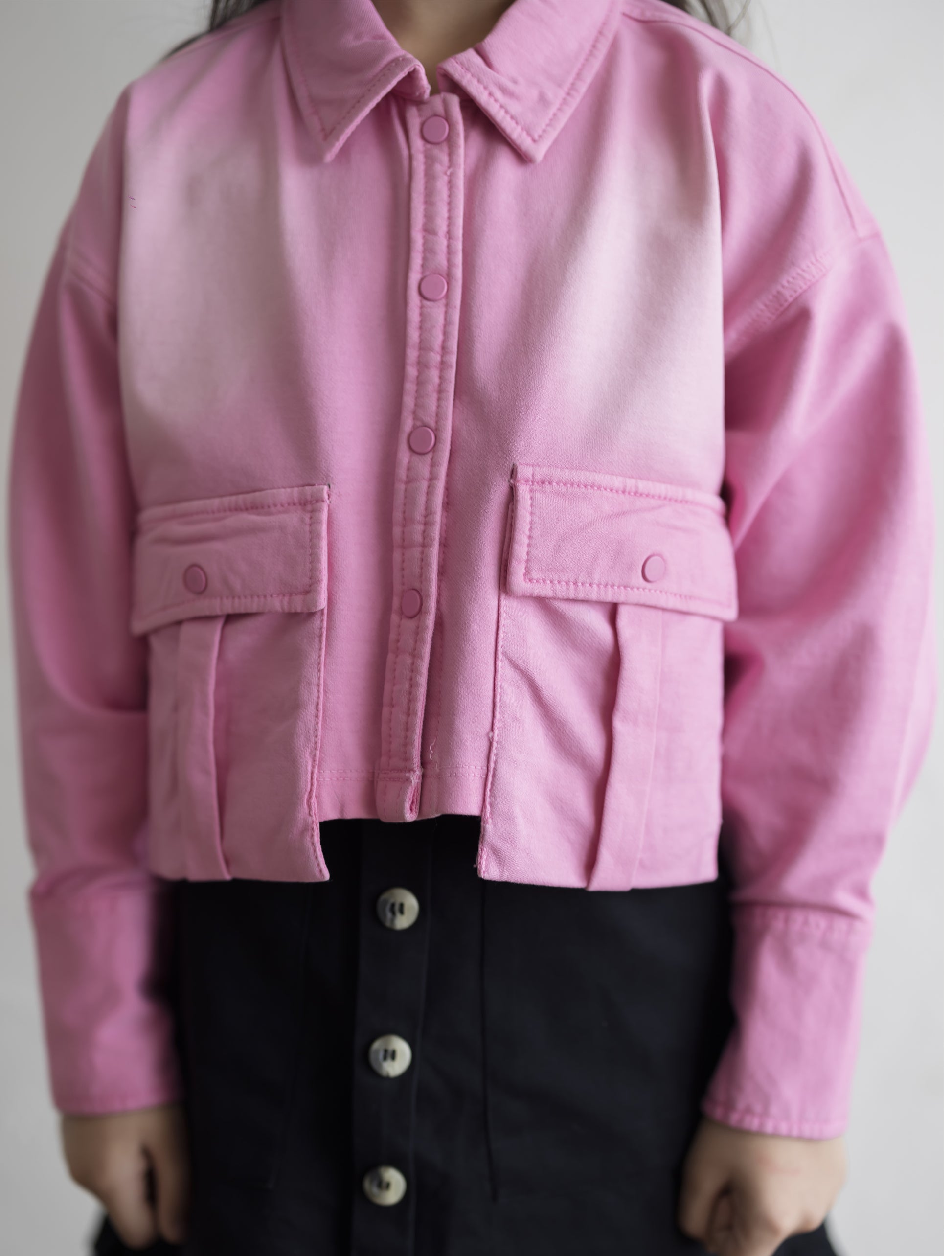 Add a pop of style to your wardrobe with our Pink Crop Shirt! Its soft fabric and versatile crop length make it perfect for any weather. The oversized pockets and ddouddou logo add a unique touch for fashion enthusiasts and models alike. Don't miss out!