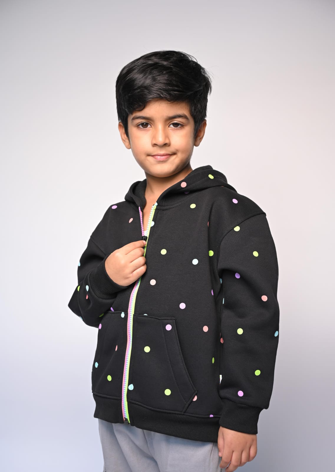 Climb to the top of the fashion charts in this funky polka dot zipper hoodie! With funky prints, stylish details, and a unisex fit, this colorful winter jacket is perfect for kids who want to make a statement. Pop it on and let the compliments flow!