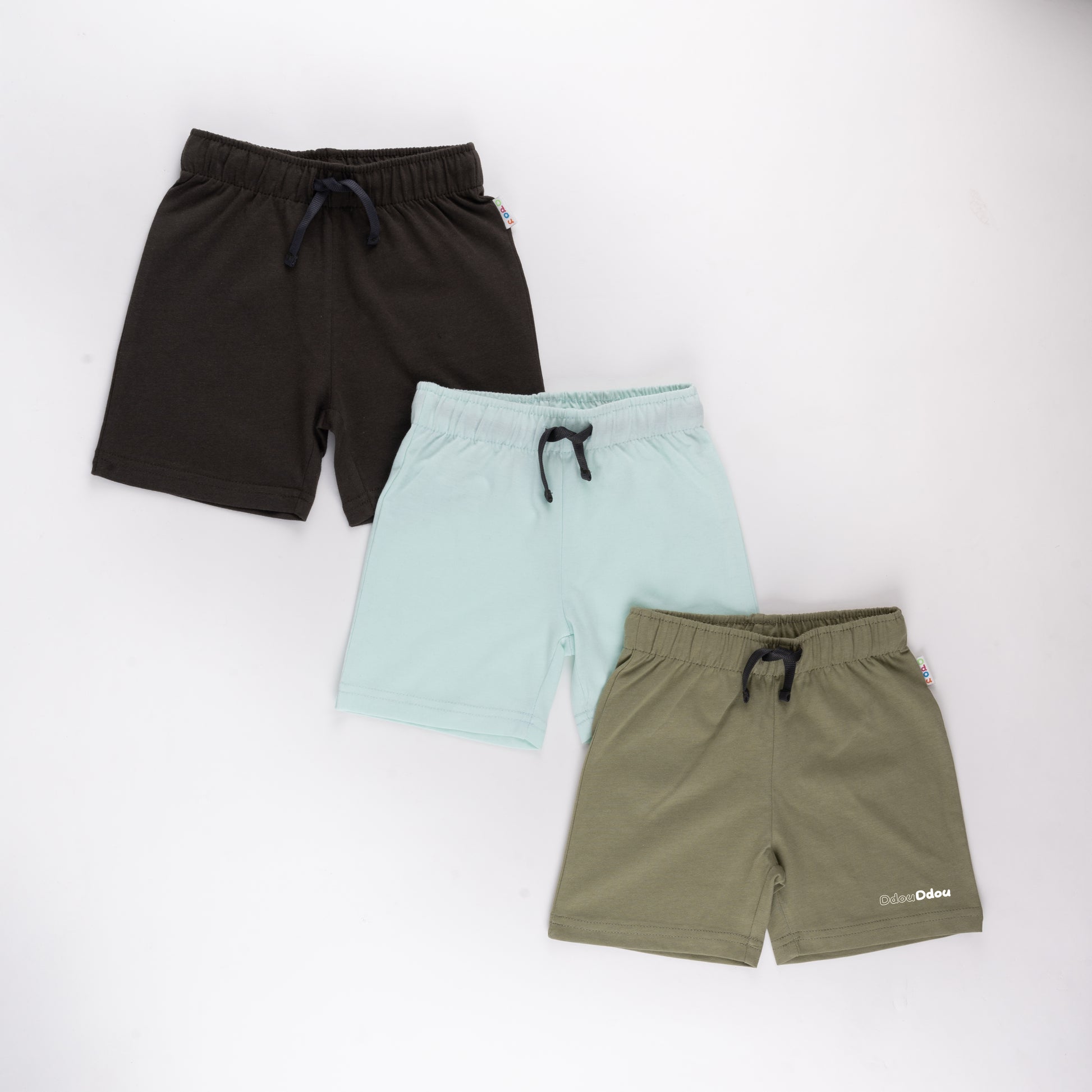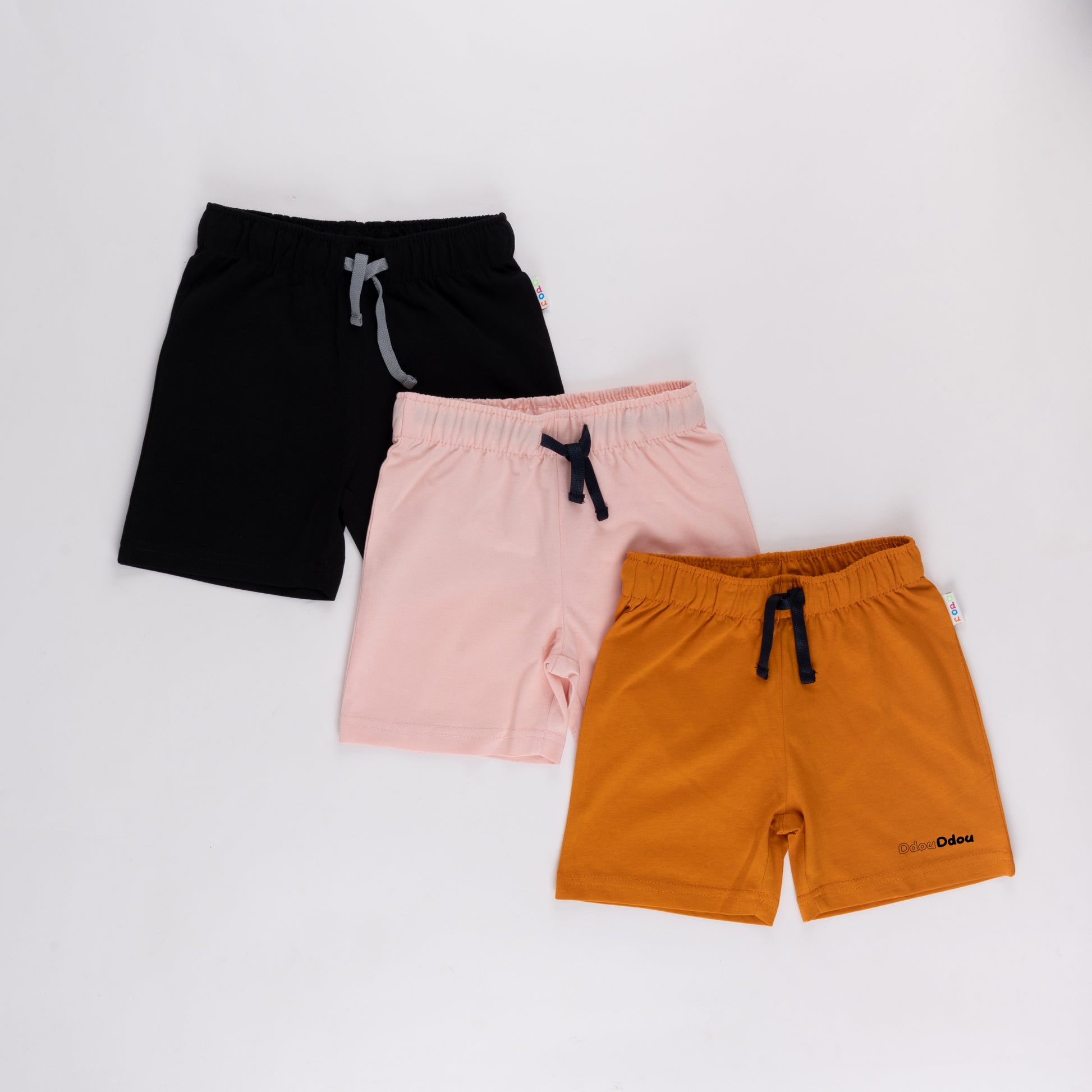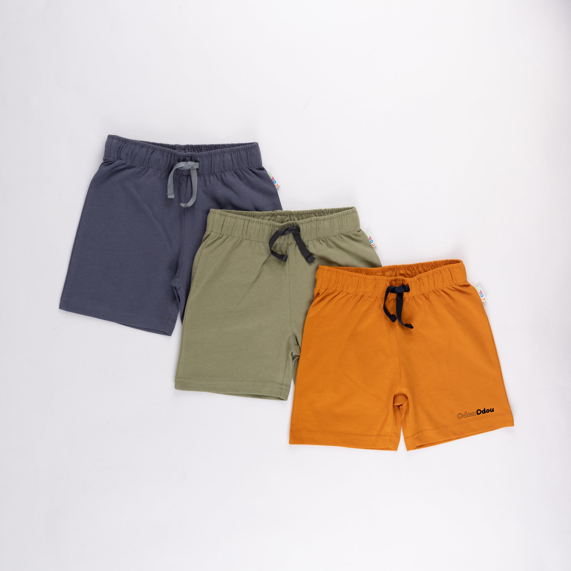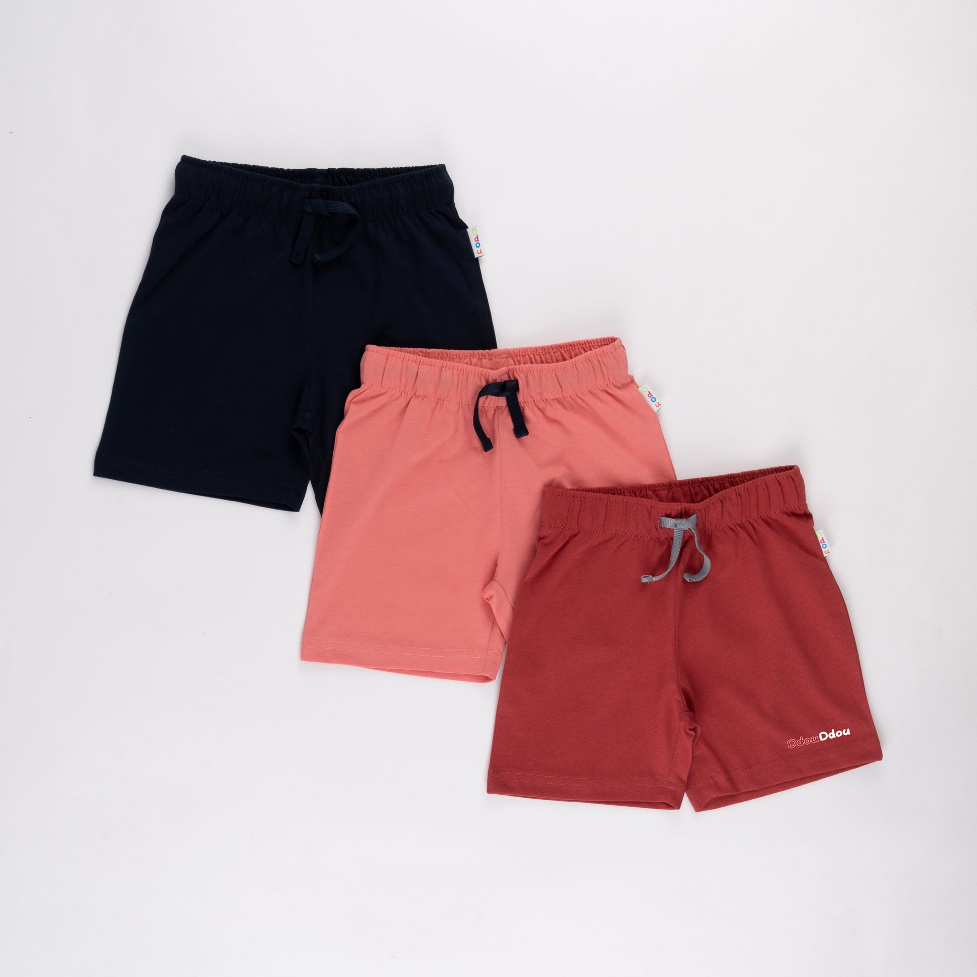 Pack of 3 Unisex Shorts in 100% cotton fabric. Covered elastication and a contrasting drawstring at the waist. A pretty logo print on the edge of left leg making it super comfortable and fashionable all together.
