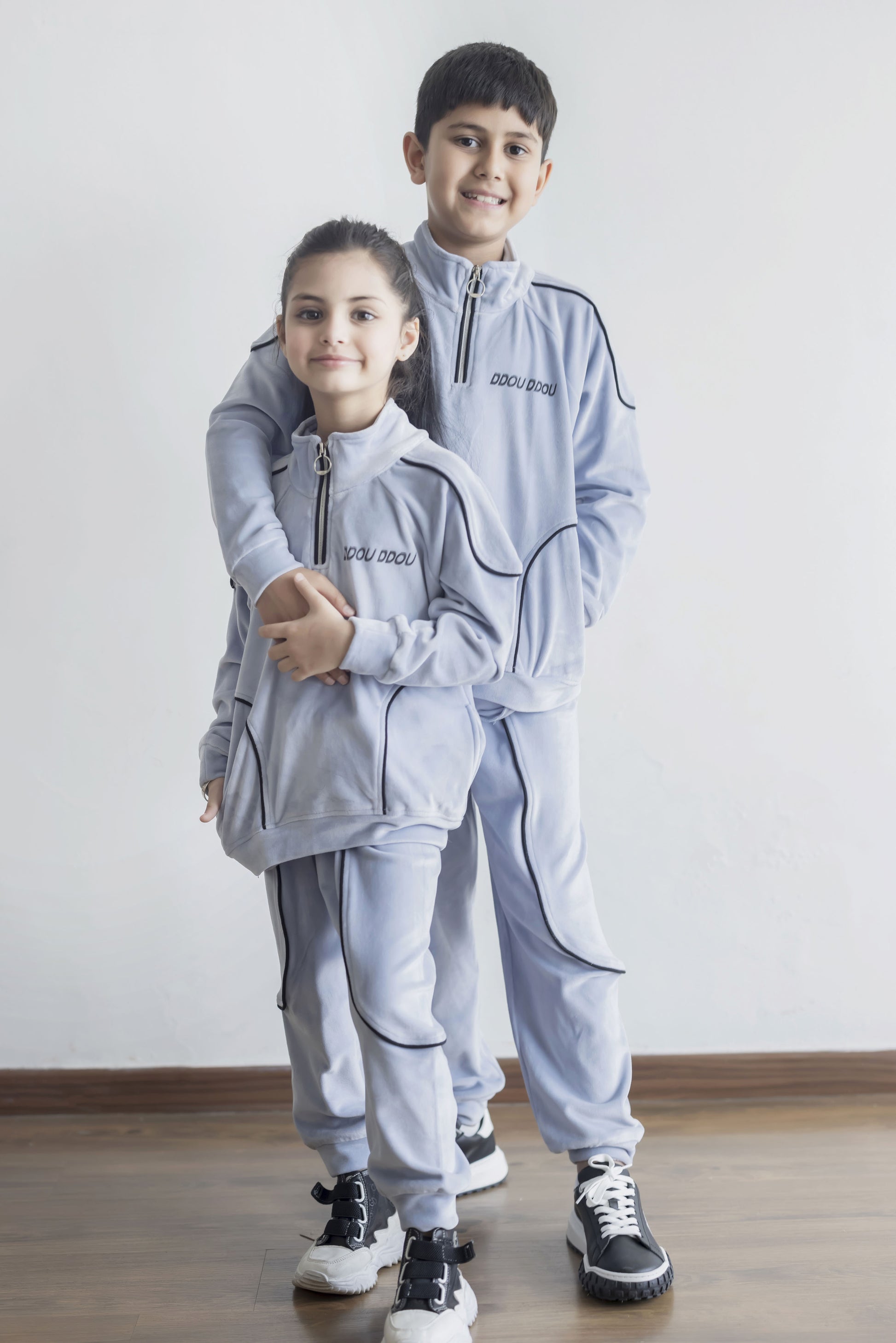 Get sporty and snuggly with our Ice Blue Velour Set. The plushy, soft fabric will keep you cozy and warm during those chilly winter days. The unisex design and fashionable ice blue color make this set perfect for everyone. Stay comfortable and stylish in this must-have winter essential.