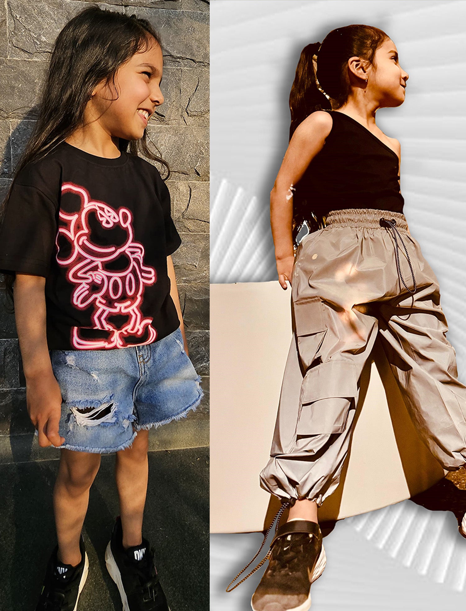 Elevate your street style with this ultimate set! Unisex reflective joggers and a Mickey Mouse t-shirt make for a quirky and fashionable look. Perfect for siblings who want to stand out at parties and rock that cool street style vibe.